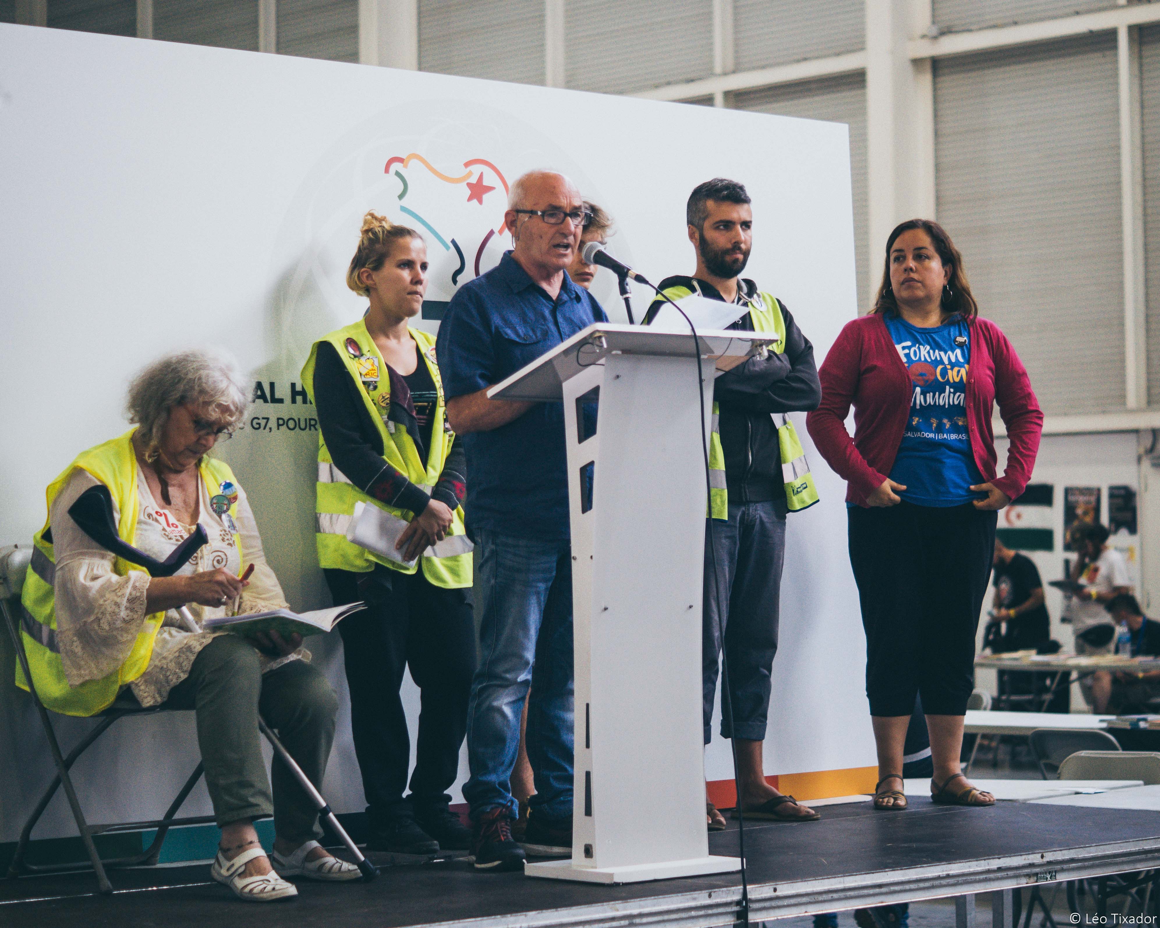 Les animateurs des plateformes : "#alternativesg7" (hexagonale) et "#G7EZ" (basque), organisateurs du contre-sommet prennent la parole. #G7Biarritz #G7WelcomeToParadise #G7France pic.twitter.com/atA29Rz9Ih
