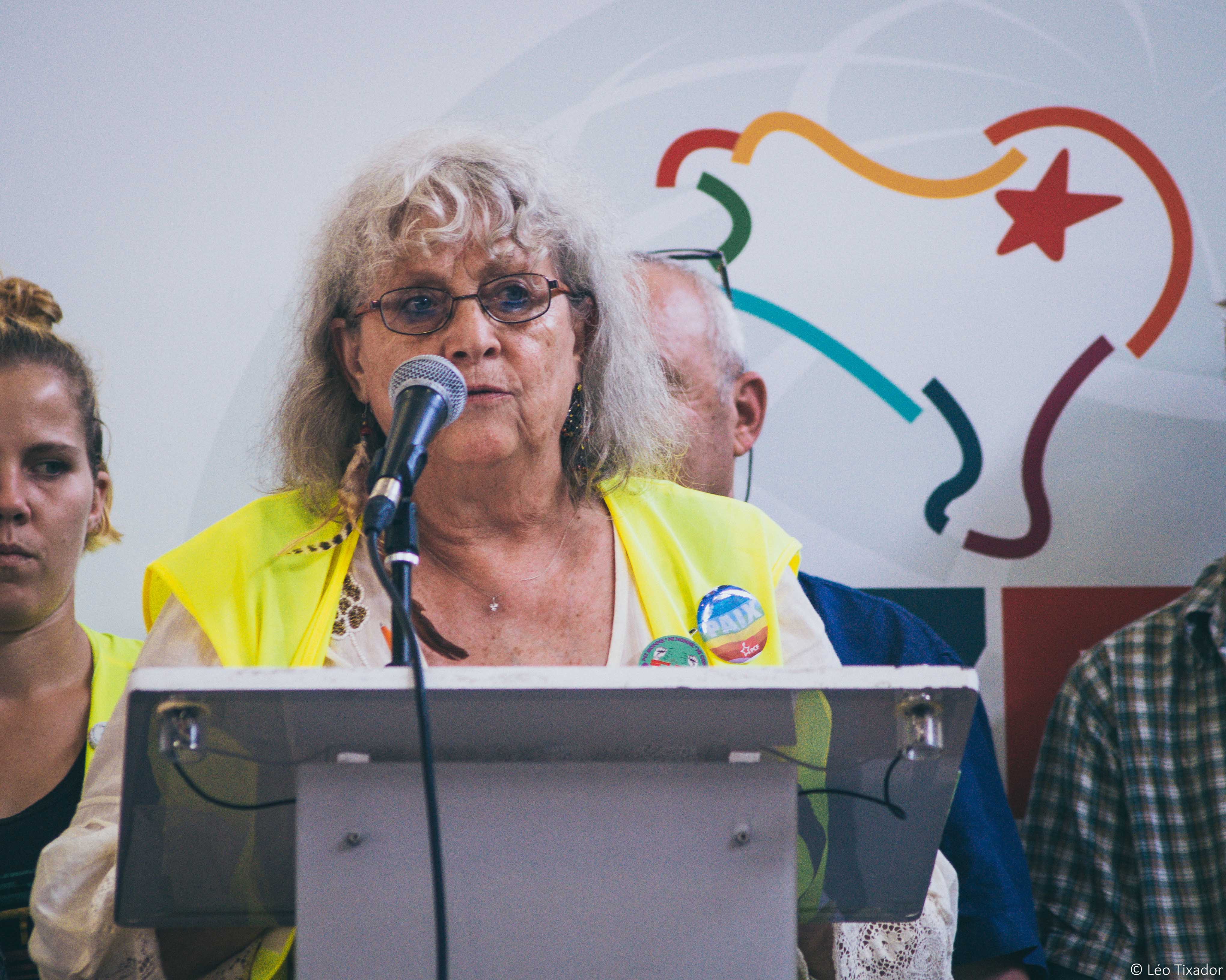 Geneviève Legay vient d'arriver à la cérémonie d'ouverture du contre- sommet.