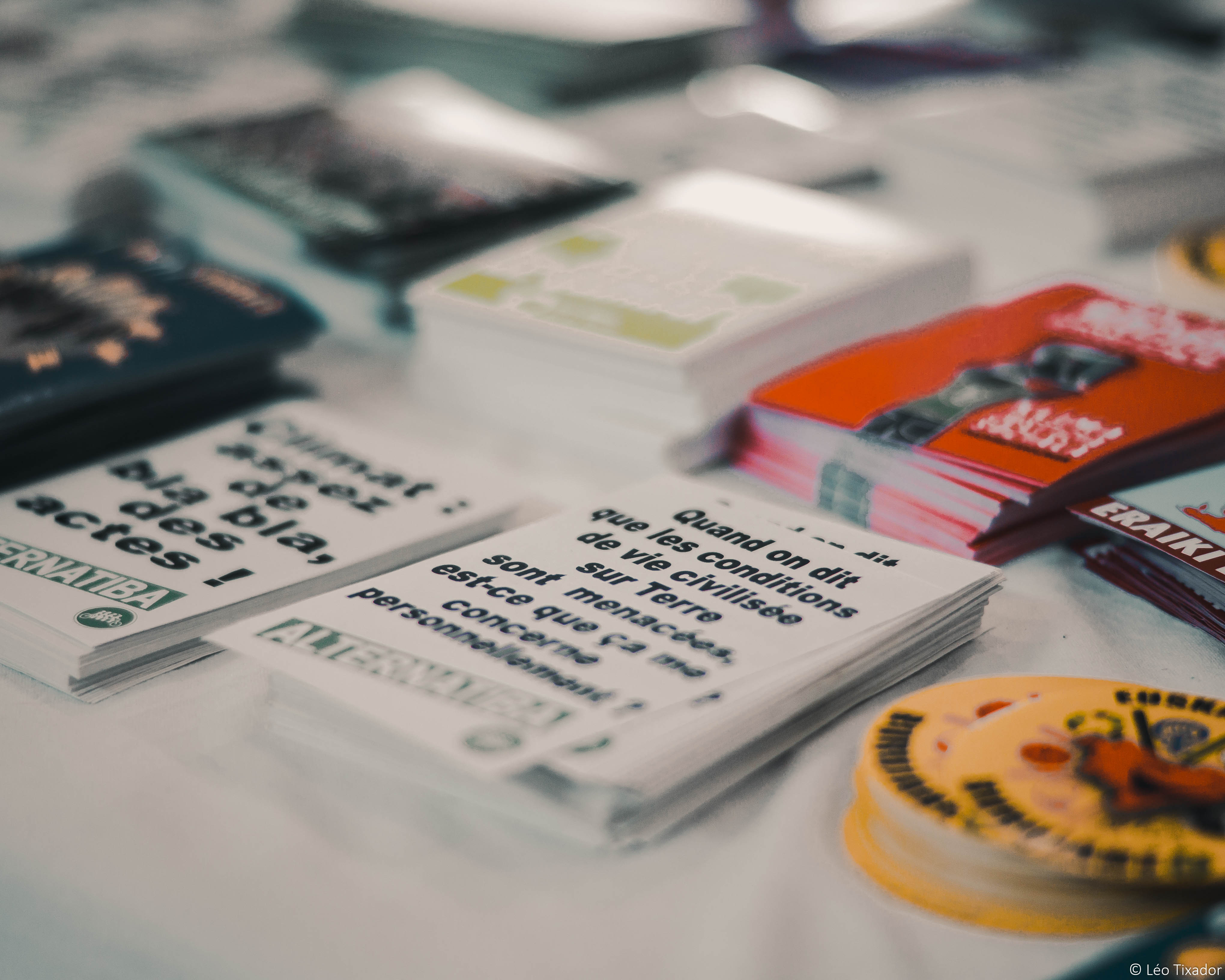 De nombreuses organisations militantes exposent leur cause au public. Ici, le stand "Bizi !", une association pour "l'urgence écologique et justice sociale".